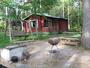 However, it is easy to go swimming from the jetty. The jetty is also a good place for fishing with a worm-baited hook and line. The cottage also has a arred wooden rowing-boat that can be used for fishing trips. The cottage has a sauna, changing room, lounge and terrace. The lounge has an open ireplace, a kitchen recess, a gas fridge and a gas hob. There is a bunk bed with a pull-out lower bed.Outside there is a garden table and benches, a swing bench, a barbecue, a well and a games area. There is also a barbecue hut close by which is available for hire by separate arrangement. No neighbours within sight distance. The cottage is modest, yet rather atmospheric with an idyllic setting.
